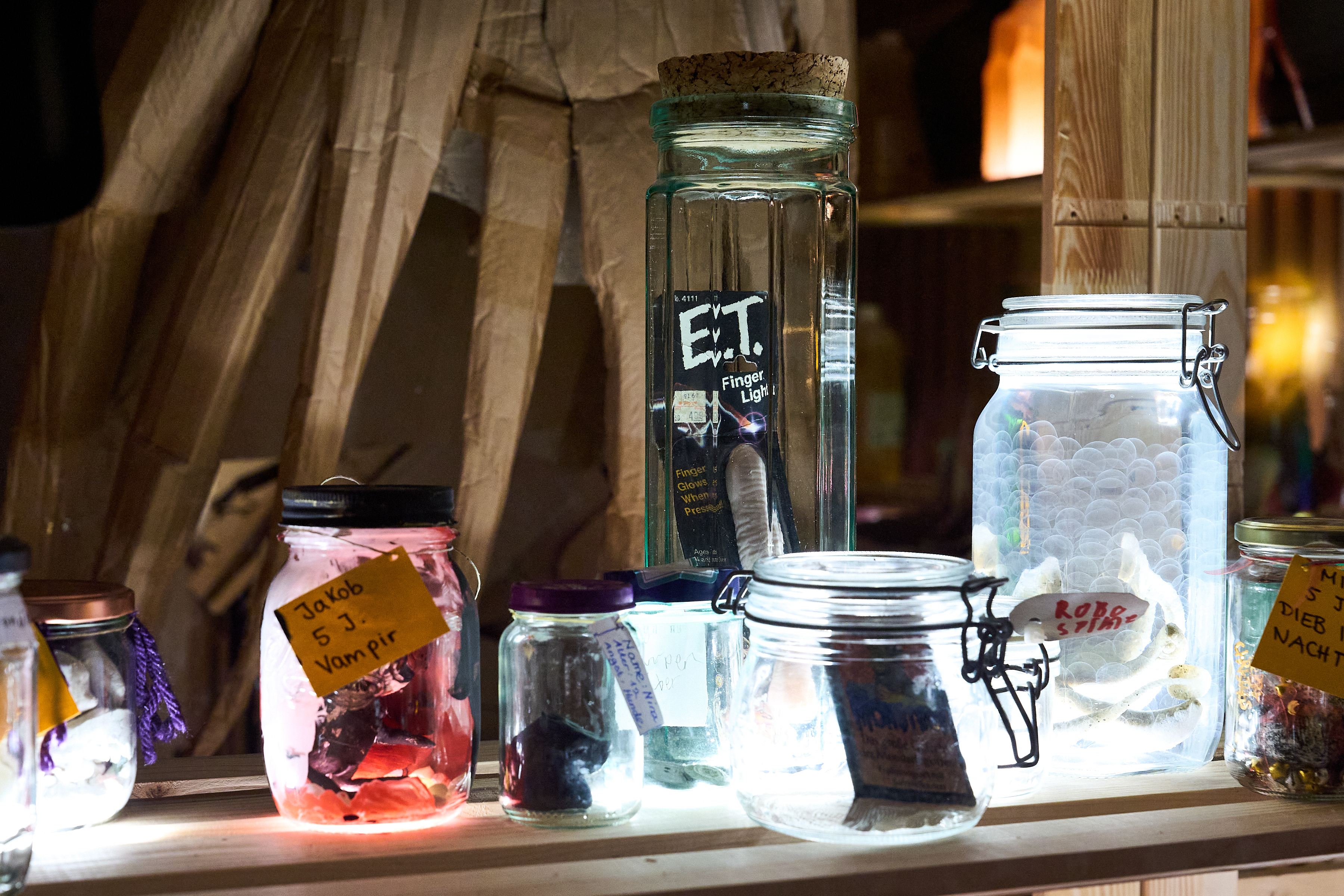 In einem Keller gibt es einiges zu entdecken – Vorräte, Winterkleider und Trödel. Vielleicht verbirgt sich zwischen dem alten Kram ein Monster? In dieser Ausstellung begegnen dir tatsächlich unheimliche Wesen. Du findest sie nicht nur Geschichten, sondern auch Schattenwürfen oder Einmachgläsern. An interaktiven Stationen kannst du deinen Mut auf die Probe stellen, verborgene Dinge ertasten und geheimnisvolle Geräusche hören.